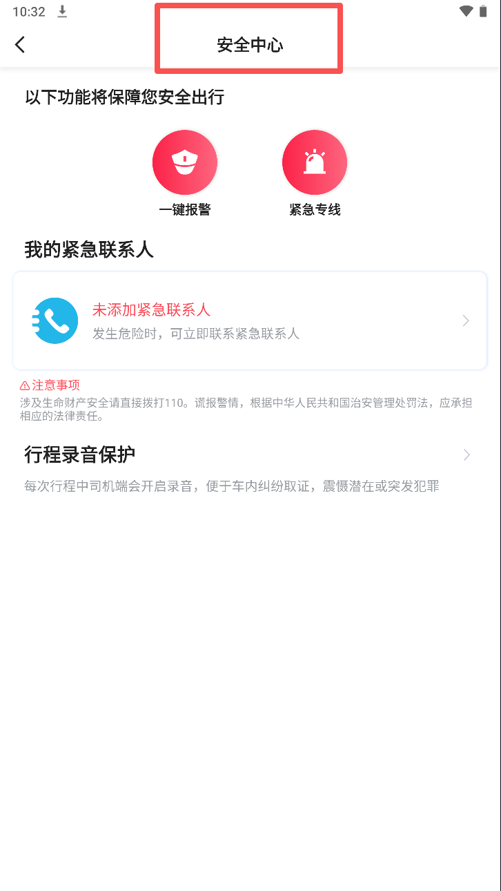 2、在安全中心页面,设置紧急联系人以确保安全。