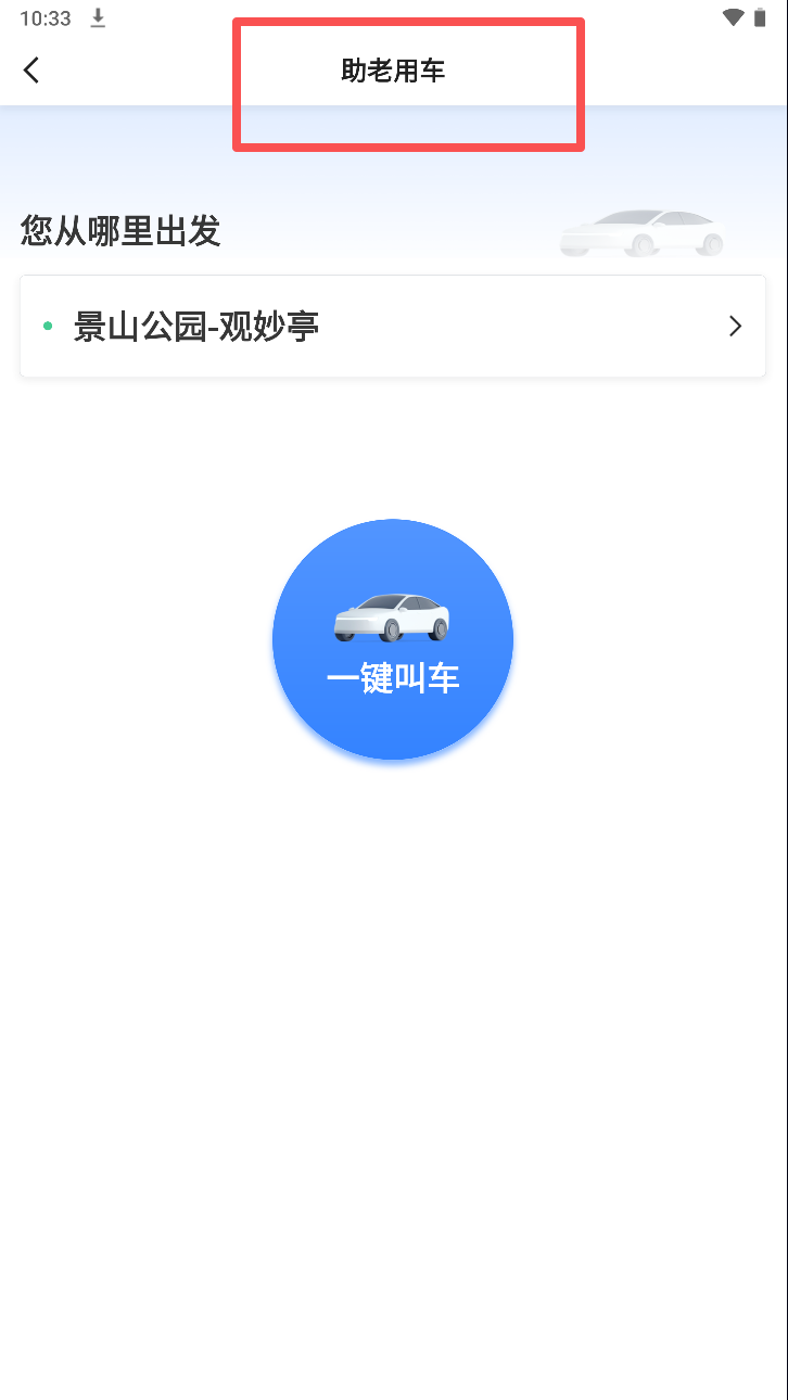 3、在助老用车页面,选择出发地并点击“一键叫车”进行预约。
