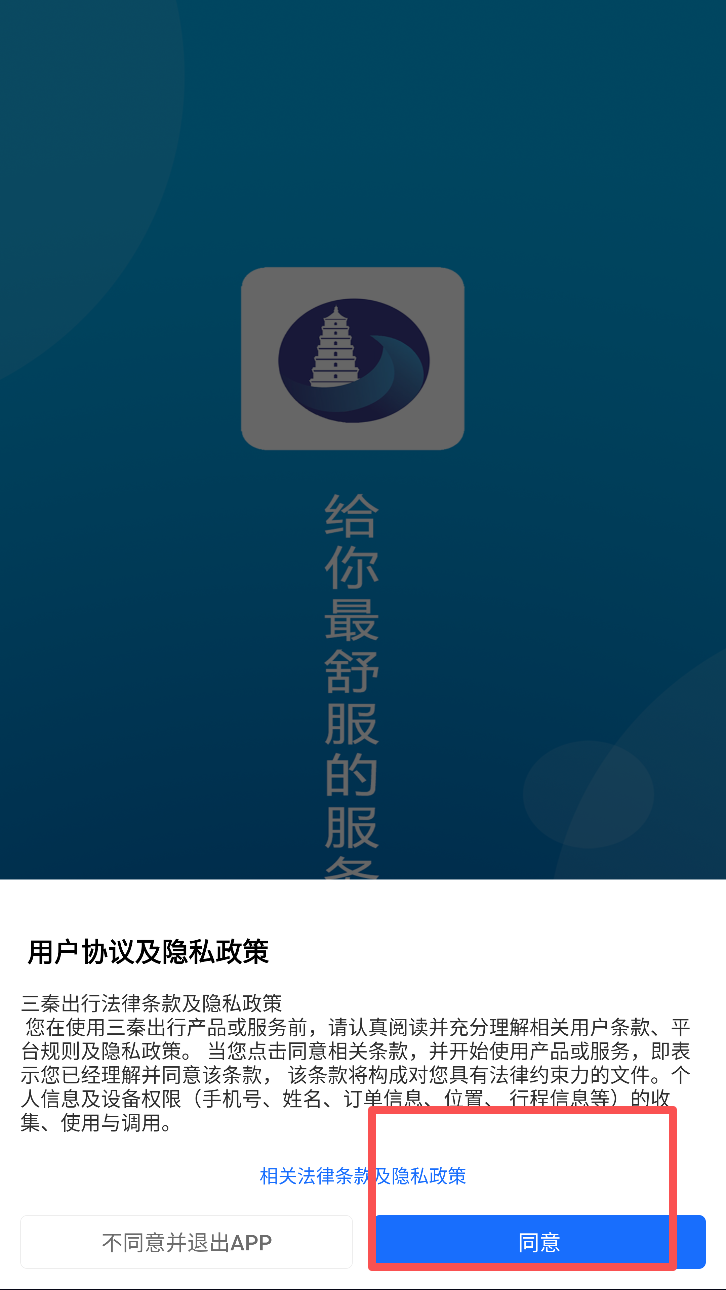 1、阅读并同意用户协议及隐私政策,点击“同意”继续。