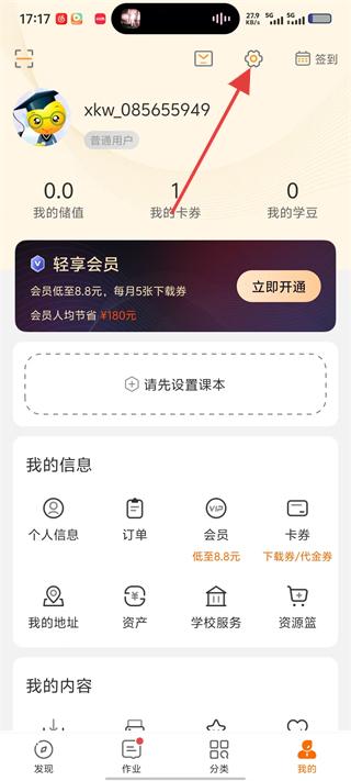 2、在个人中心页面,点击右上角的【设置】图标,可进入设置界面,管理账号、功能等配置项。