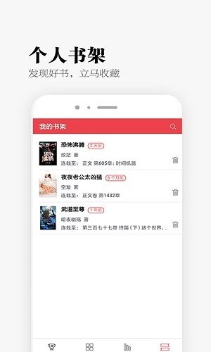 您可以把发现的好书添加至书架,无论何时何地都能阅读。书架会自动记录您的阅读进度,为您提供更便捷的阅读体验。