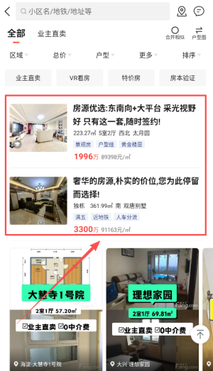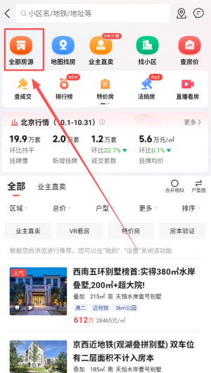 2、在二手房页,点击【全部房源】,浏览北京二手房列表。