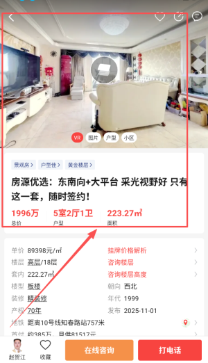 4、在房源详情页,可使用【VR-图片-户型-小区】等功能,了解房屋。