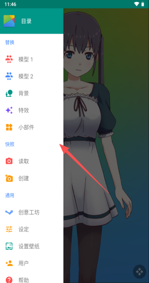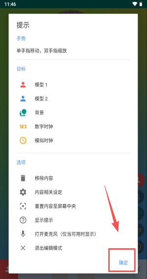 2、单指拖模型双指缩放,点模型1模型2可快速切换显示角色。