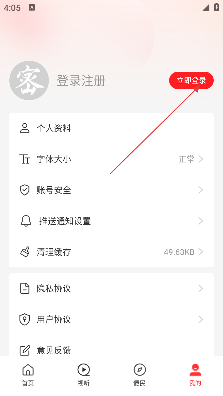 1、进入首页,点击底部【我的】进入个人中心界面。