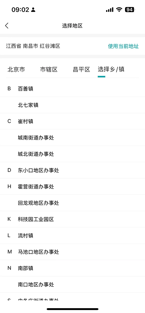 选择你所在的地区,精确到乡/镇;