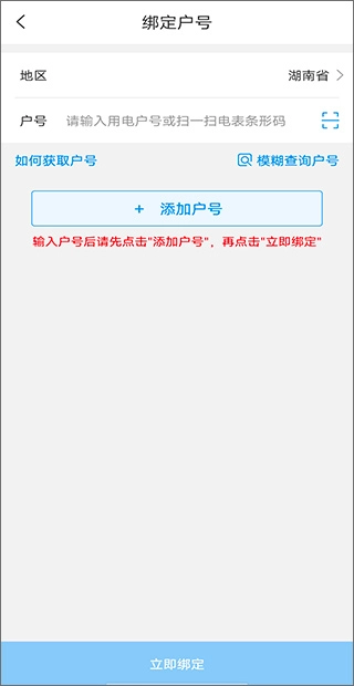 选择您所在的省市地区,准确输入用电户号完成绑定
