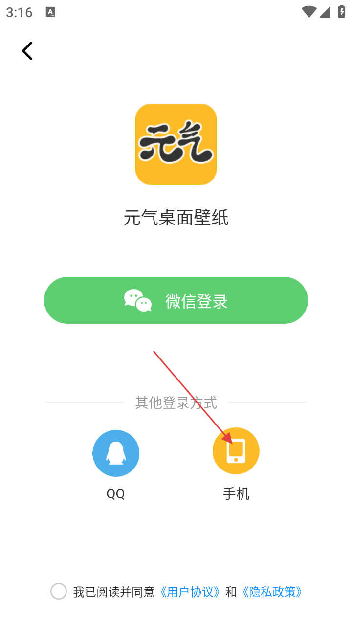 3、在登录选择界面,有微信、QQ、手机等登录方式,选择【手机】登录进入手机号登录页面。