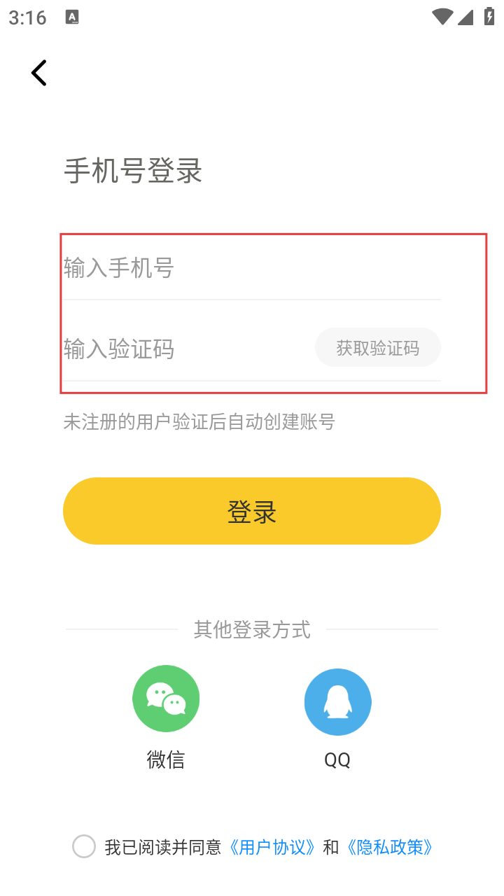4、在手机号登录页面,输入手机号和验证码,勾选同意协议后点击【登录】完成操作。