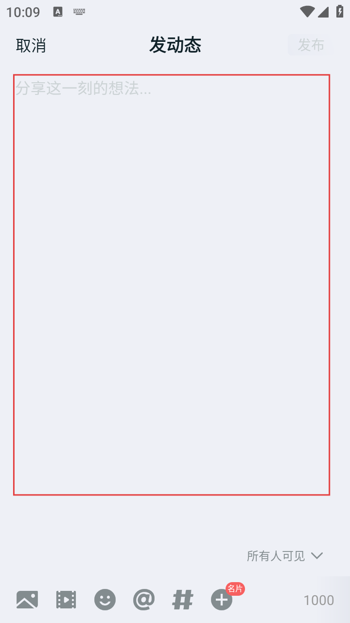 3、在发动态页面的输入框中,输入想要分享的想法,还可借助下方图标添加图片、表情等元素。