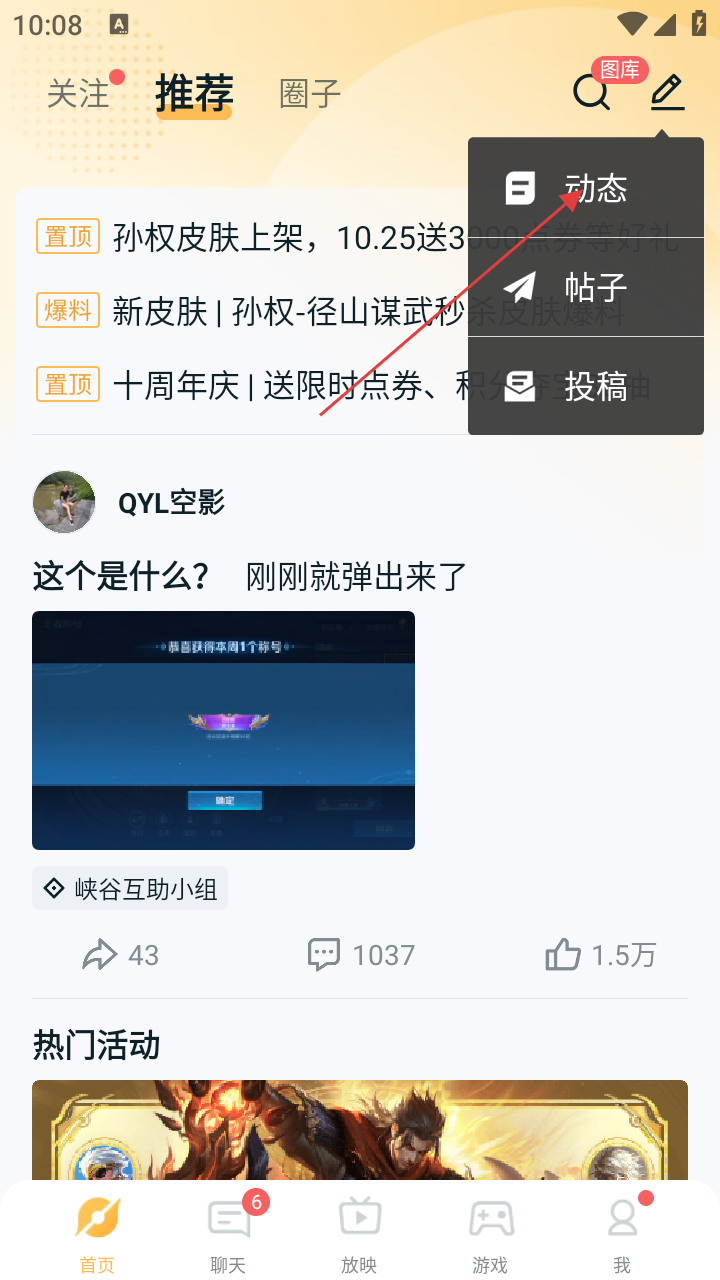 王者营地怎么发动态
