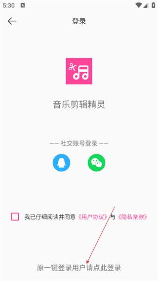 3、在登录页,可选择社交账号(QQ/微信)登录,或点击“原一键登录用户请点此登录”,进入手机号登录界面。