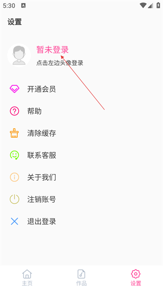 2、在设置界面中,点击“暂未登录”区域,进入登录页面。