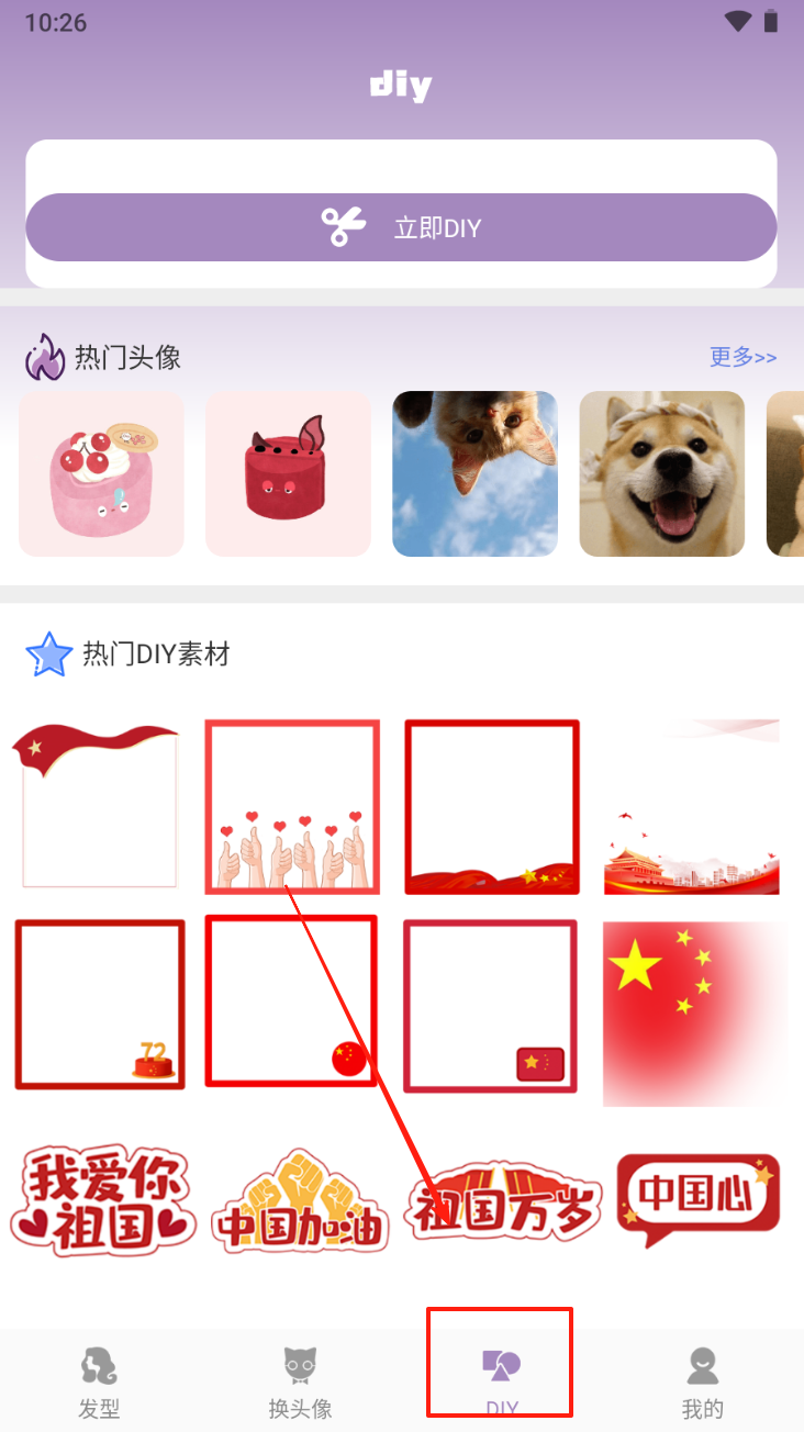3、DIY素材选择:点击“DIY”按钮,选择热门DIY素材进行个性化设计。