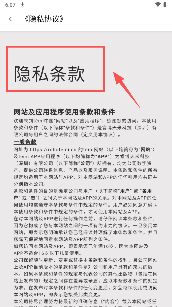 4、阅读隐私条款:点击“隐私条款”标题,了解隐私保护相关条款。