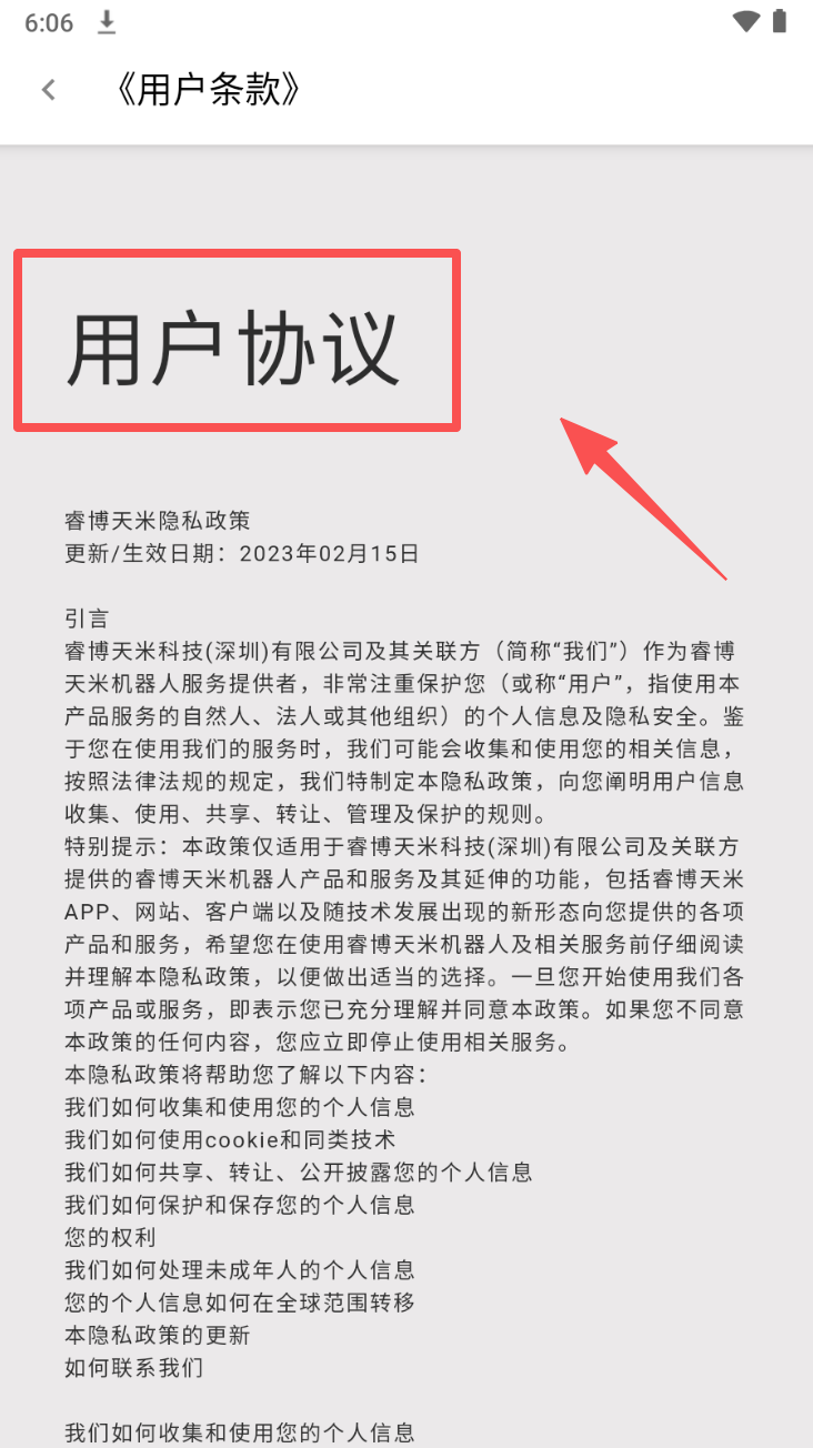 3、阅读用户协议:点击“用户协议”标题,仔细阅读协议内容。
