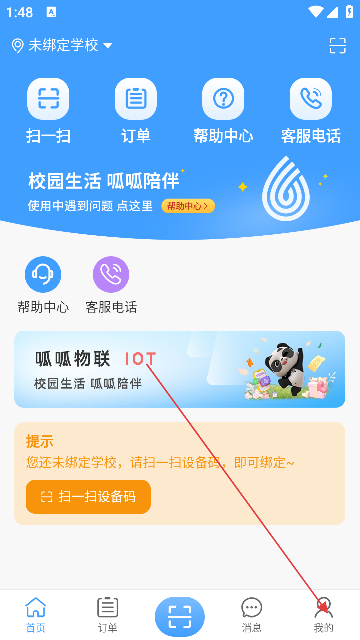 1、打开“呱呱物联”APP,进入应用首页,点击底部【我的】选项,进入个人中心。