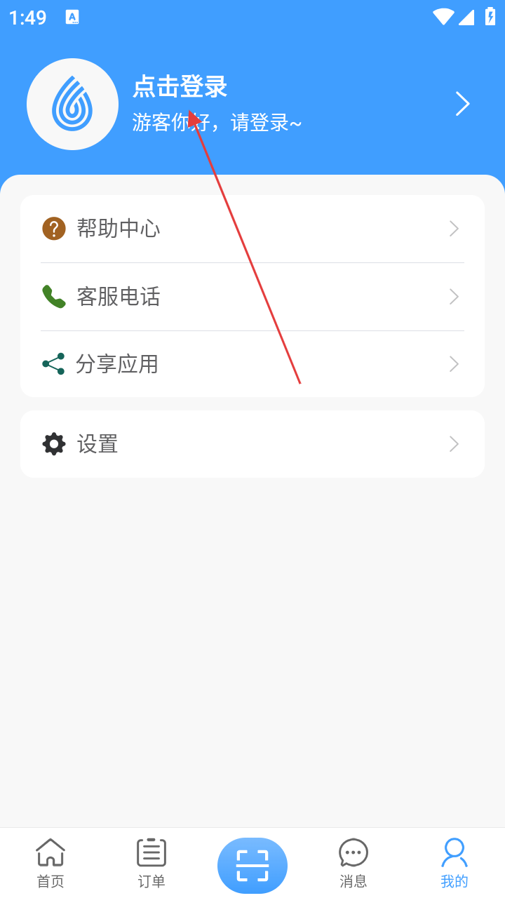 2、在“我的”页面,点击【点击登录】区域,进入登录页面。