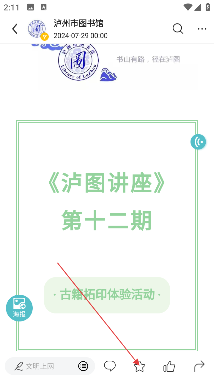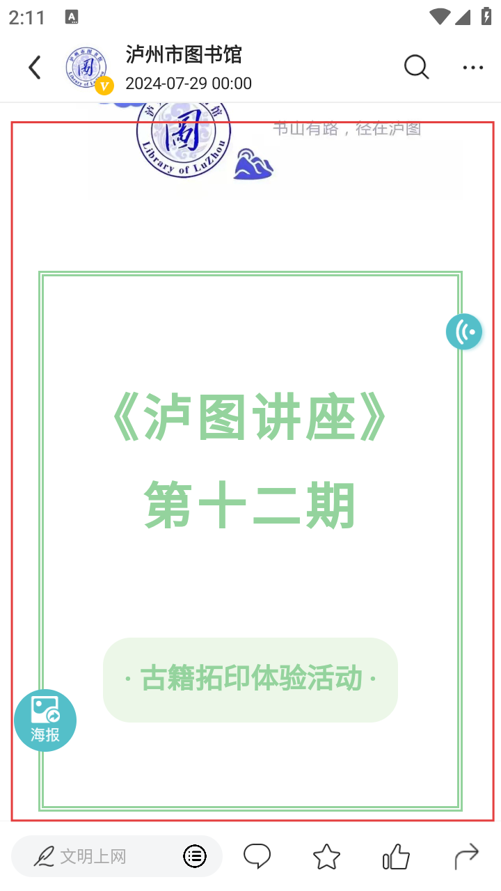 3、在泸州市图书馆相关内容页面,找到《泸图讲座》第十二期的内容,点击进入该讲座详情页面。