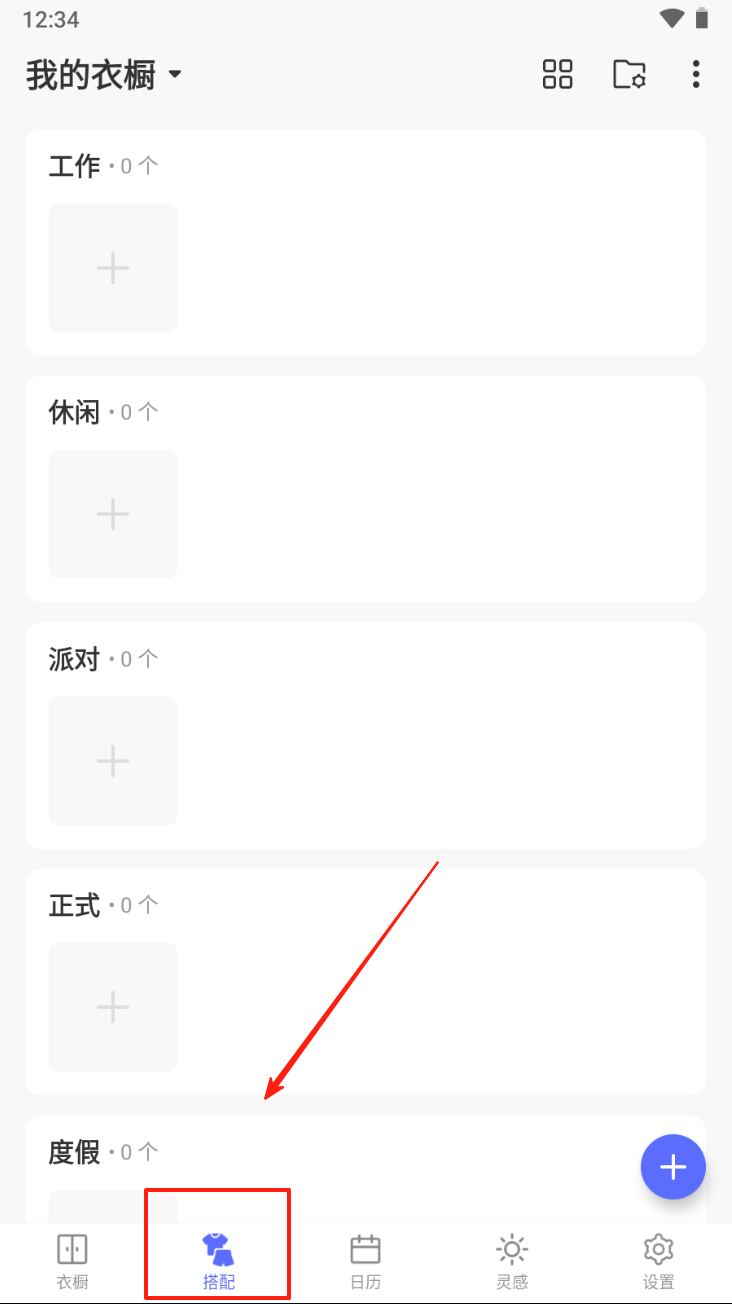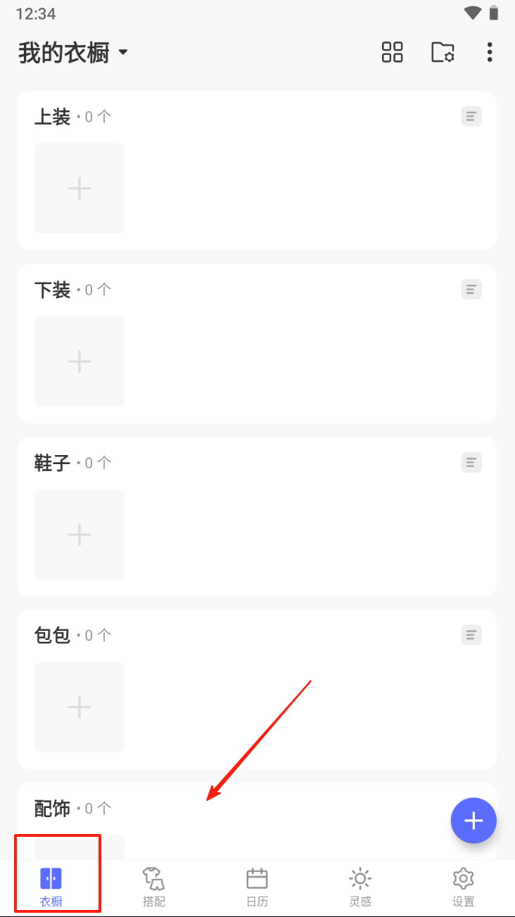 1、进入衣橱:点击底部“衣橱”图标,查看和管理衣物分类。