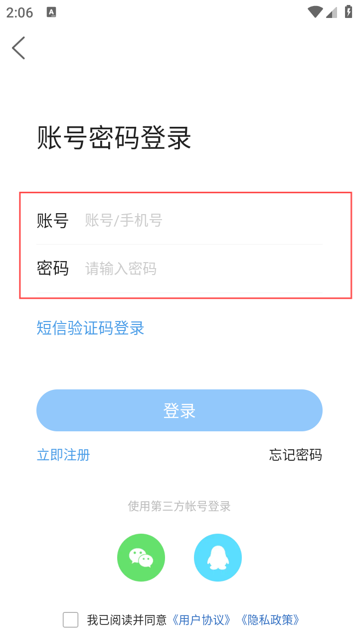4、填写账号、密码,勾选协议,点击【登录】,完成账号登录。