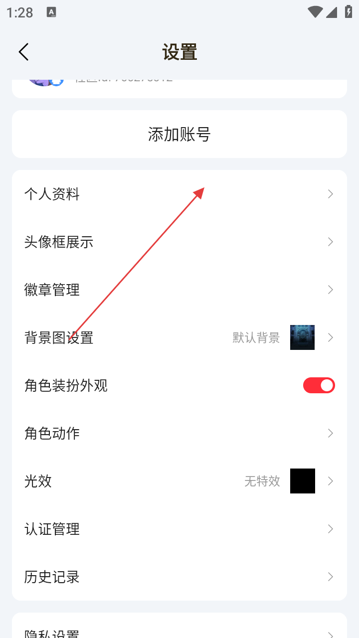 3、在设置页面,点击【个人资料】选项,进入个人资料页面。