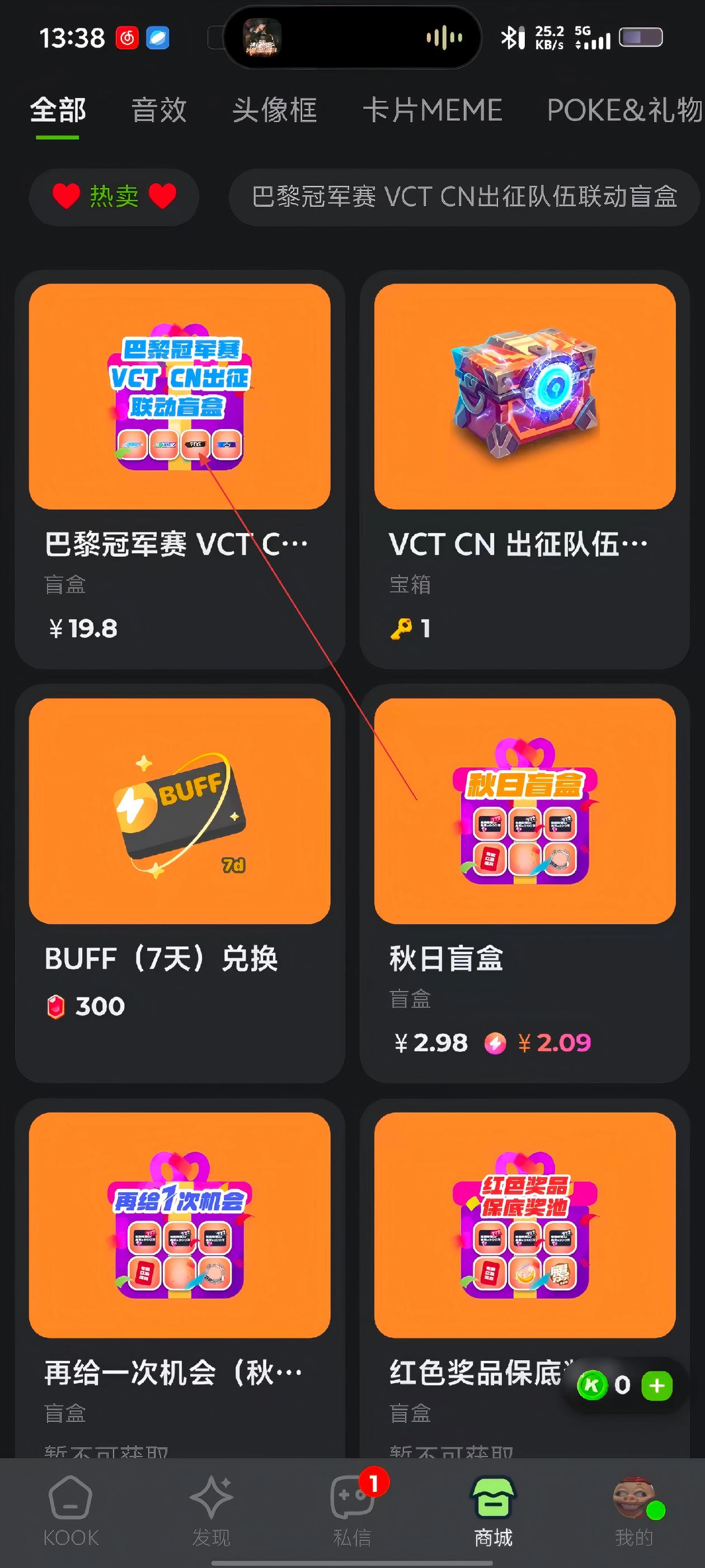 2、在商城页面,找到“巴黎冠军赛VCTCN出征队伍联动盲盒”,点击进入其详情页。