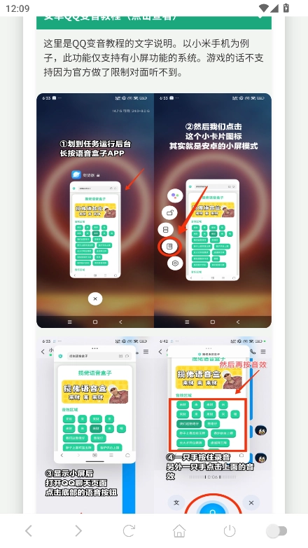 继续向下滑动页面,即可查看三种变音教程,大家可以第一个教程后的“点击查看”为参考示例。