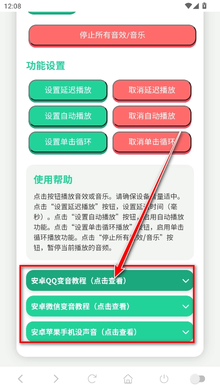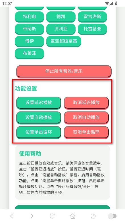 点击任意音效即可播放对应的音效;