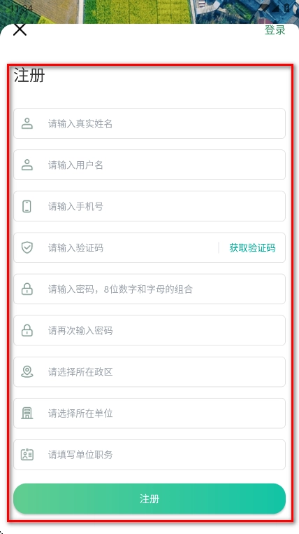 打开四川田长巡田,点击注册。