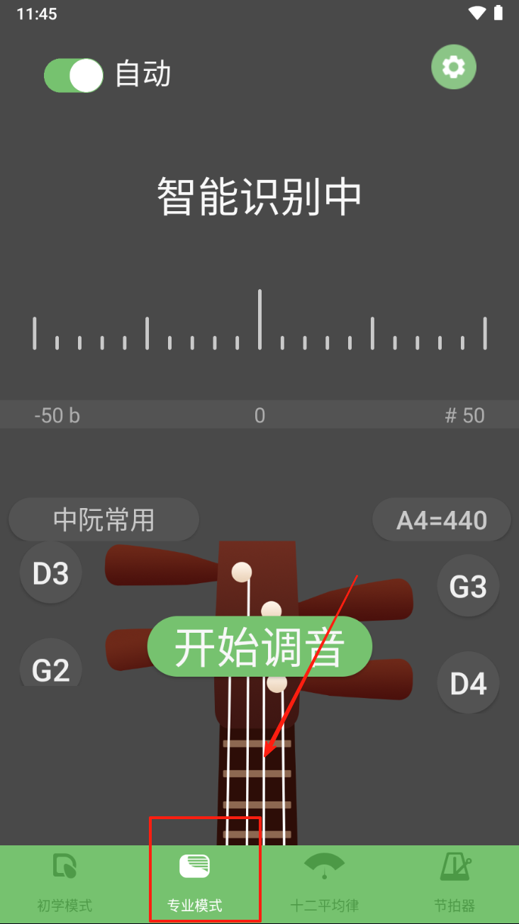 3、开始智能识别:点击“开始调音”按钮,应用将自动识别并提示您调整乐器。