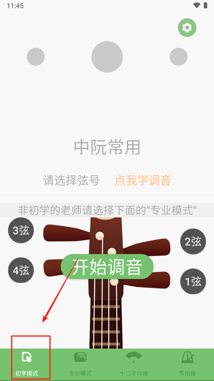 2、选择调音模式:点击“初学模式”或“专业模式”选择适合您的调音方式。