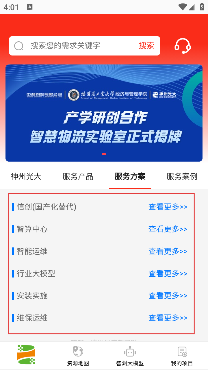 2、切换到【服务方案】,查看信创、智算中心等业务内容。
