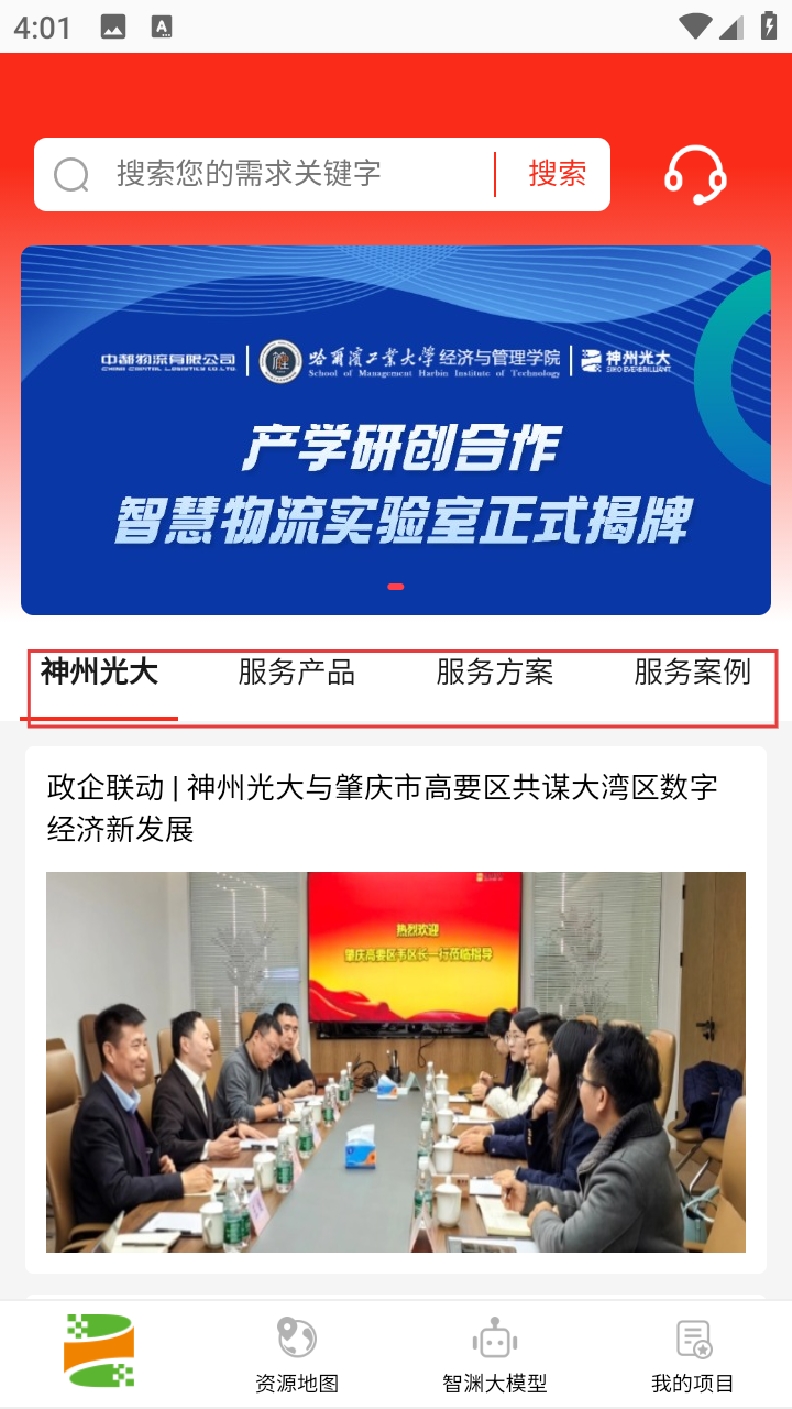 1、进入平台,点【神州光大】板块,浏览企业相关资讯。