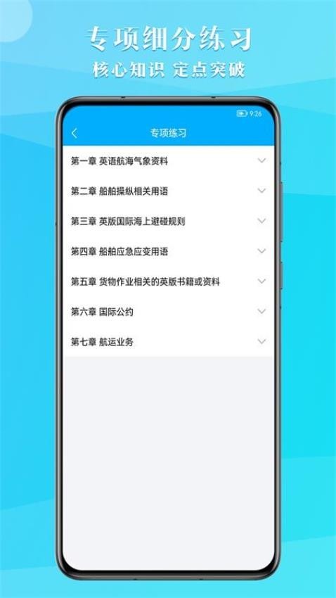4.该软件集合了船舶管理、航海知识、海洋气象、船舶机电等多个方面的考试内容,帮助考生更好地备考和提升考试成绩。