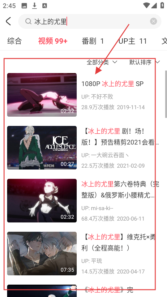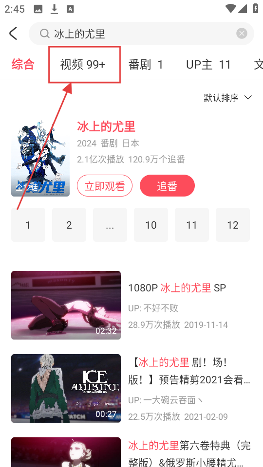 3、搜索结果出来后,切换到【视频】分类标签,这样就能看到相关的视频内容列表啦。