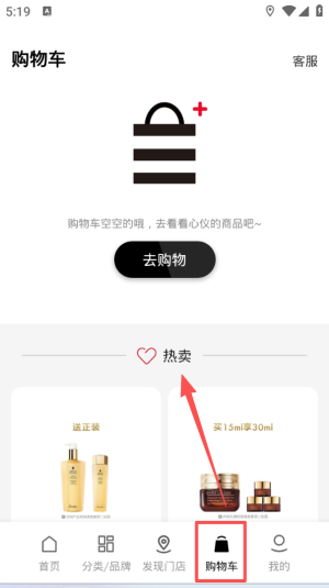 4、打开购物车页面,若购物车为空会提示去购物,下方设有热卖商品展示区,可从中挑选商品添加至购物车。