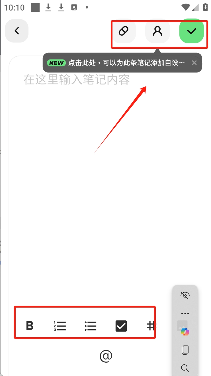 3、输入笔记内容并使用工具栏进行编辑。