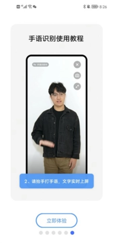 抬手打手语,文字实时显示;
