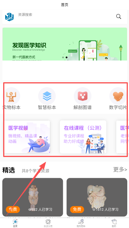 1、课程选择功能,涵盖各类医学课程,可根据个人需求自由选择,灵活安排学习时间与内容。