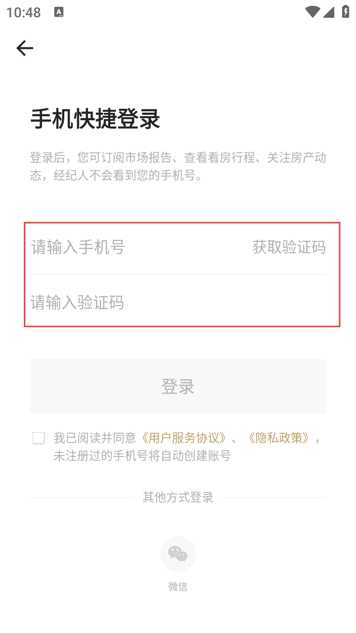4、登录页填手机号、验证码,勾选协议点【登录】,或选微信登录,完成账号登录。