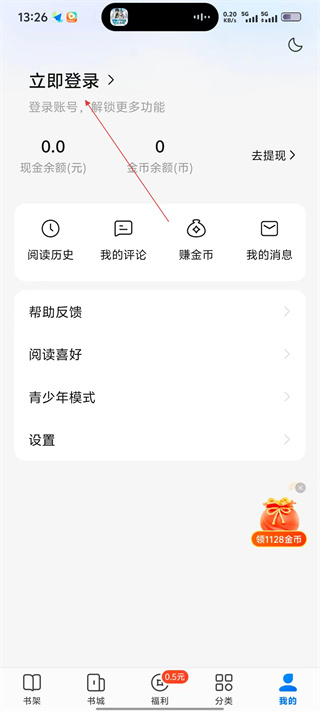 2、在【我的】页面,点击【立即登录】,可进入登录选择界面,选择手机号登录方式。
