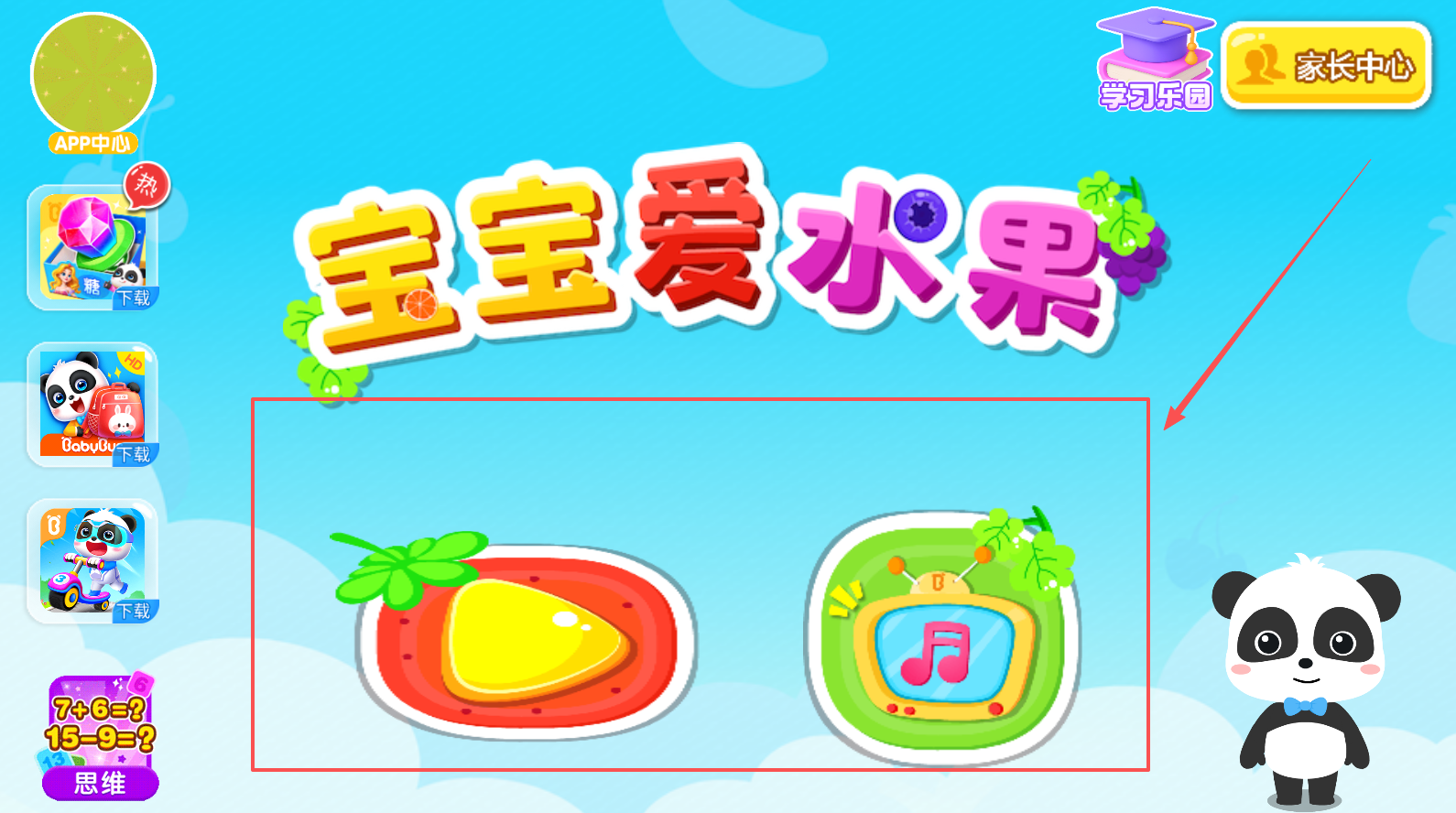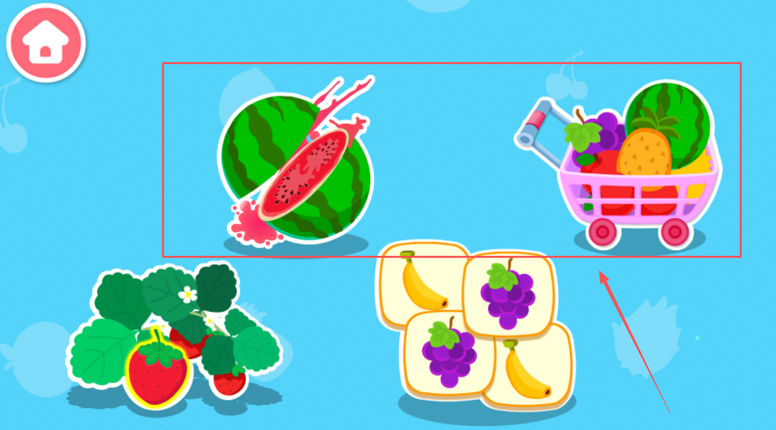 2、在水果学习区,孩子们可通过有趣的配音和形状识别,轻松学习到各种水果的名称及相关知识。