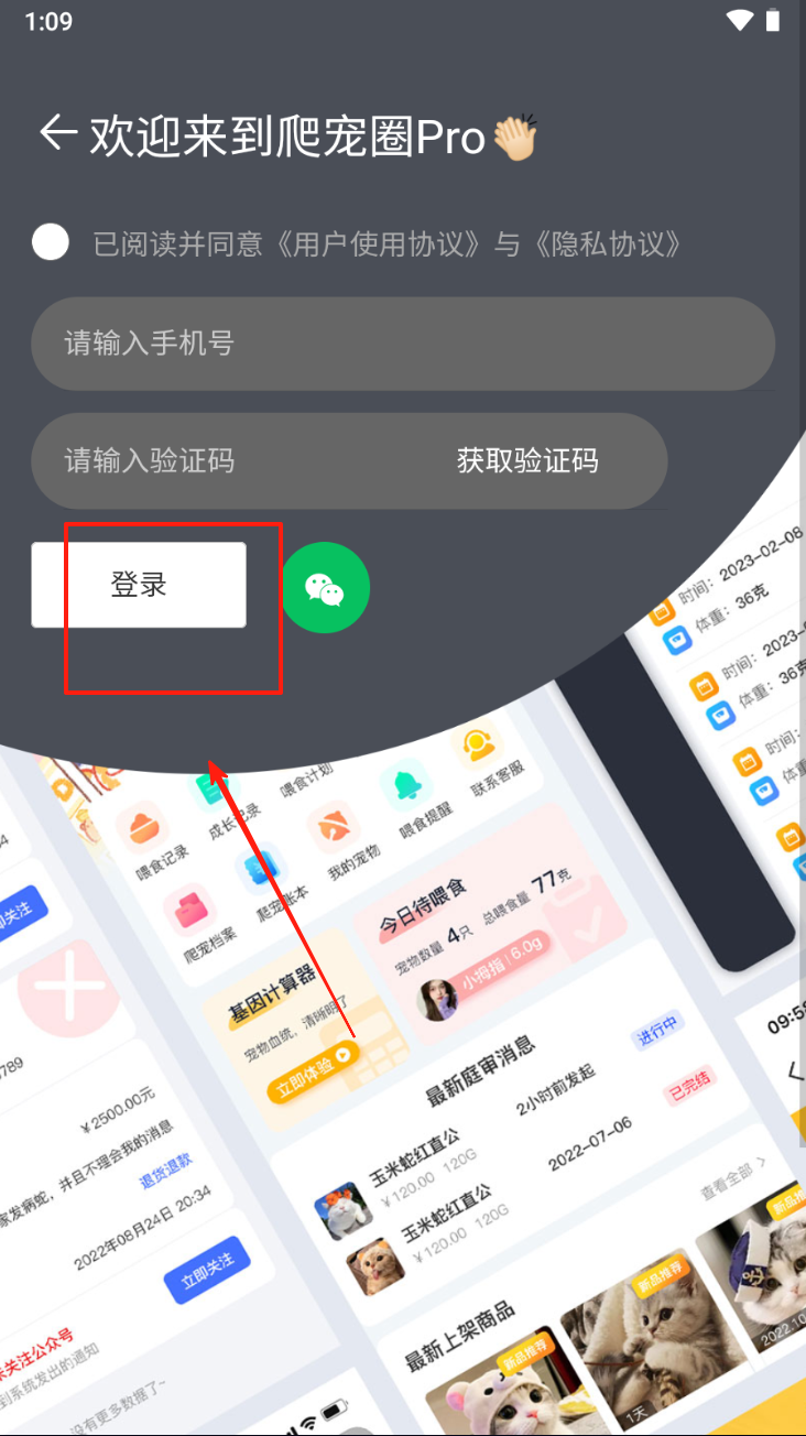 4、点击“登录”按钮,输入手机号和验证码,完成账户登录。