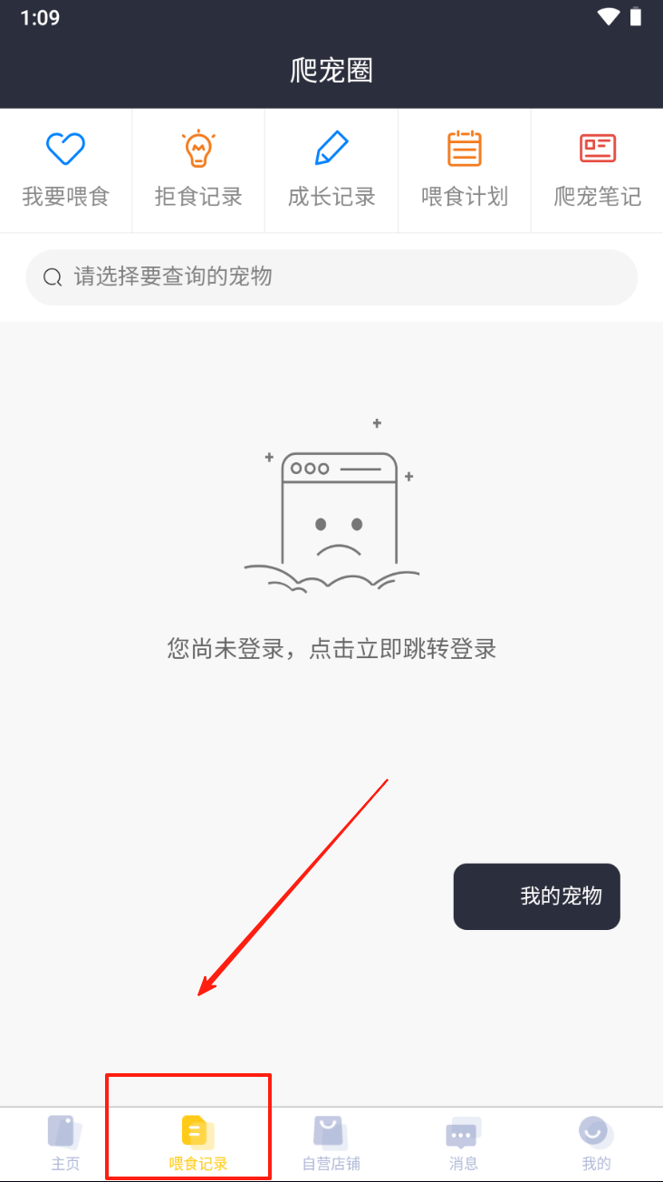 2、点击“喂食记录”按钮,记录和管理宠物的喂食情况。