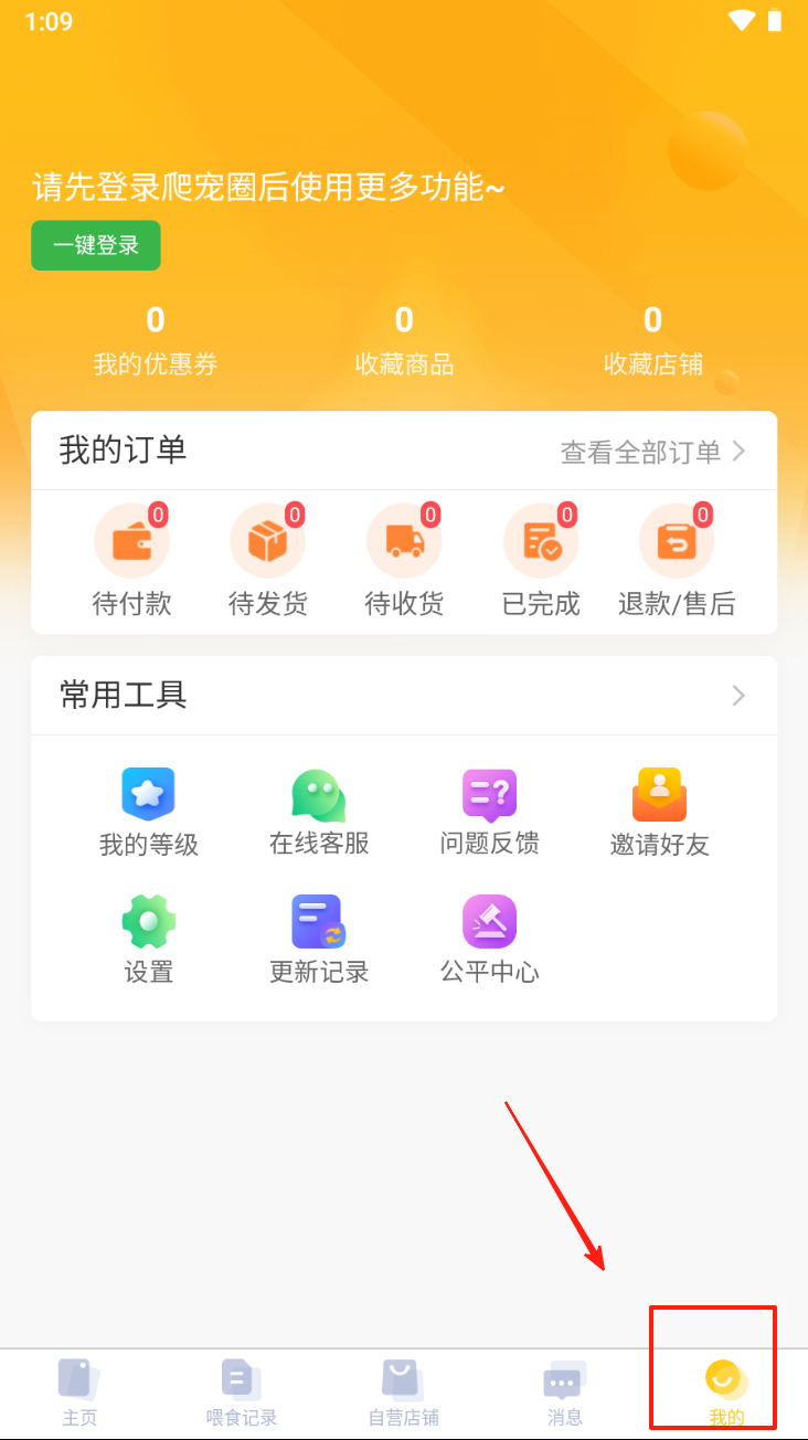 3、点击“我的”按钮,进入个人中心,查看订单和常用工具。