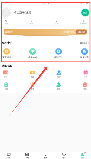 1、在“我的”页面中可以看到“开通悦读卡”,点击立即开通;在里面就可以看到悦读卡和租阅读。