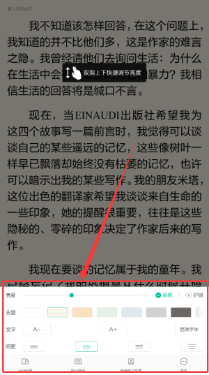9.阅读界面不舒适怎么办?调整字体大小、亮度等设置。