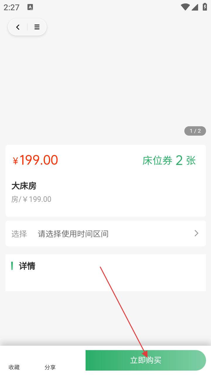 4、进入所选房型的详情页面,点击【立即购买】按钮,即可进行该房型的购买操作。