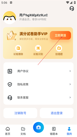 2、进入个人中心后,点击【立即激活】可进入会员开通页面,解锁【试卷擦除】等VIP专属功能。
